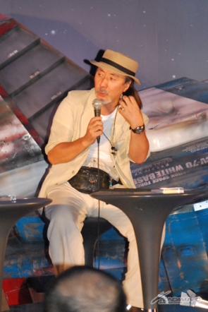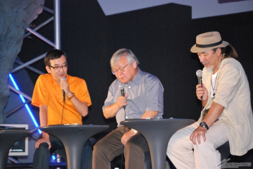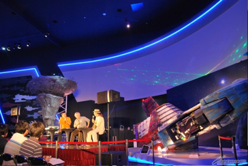 舉辦座談會的地方是高達東京最前線內的體驗區。以核心戰機和阿・巴瓦・空的巨大模型作背景,安彦氏和板野氏聊著當年的回憶。