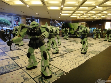 會場中,以全高約 6m 的1:3「高達」和「馬沙專用渣古」為首,還有根據高達模型「RG 系列」的外型來製作的20台1.8m「渣古」等都在現場展出,清一色都是高達。