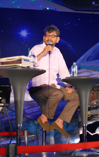 今天一個不小心就把談話的內容轉到狂熱粉絲的方向去了(笑)。動畫產品這種東西,在作品完成後大半會被當作廢棄物處理掉。動畫師們用手畫出來的原畫多半如此,不僅局限於動畫,特攝作品的縮尺模型也是一樣的。但是我一直想要把這些東西當作文化遺產留給後世。因為我就是看著動畫與特攝長大的人,我能變成像今天這樣也是因為這些東西的功勞。為了報恩,我希望我這一生能夠不斷地繼續來作像這次一樣的事情。其他還有很多想法也正在進行,請大家多指教(庵野)