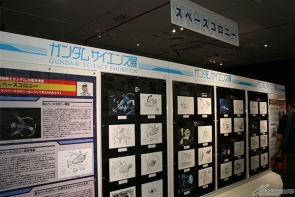 ▲歷代系列作中登場的「宇宙殖民地」設定稿陳列在此,可以清楚看見設計的轉變。
