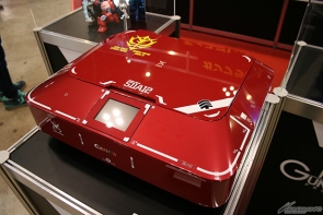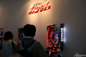 ▲SANKYO 攤位在半圓形巨大螢幕播出「FEVER 機戰士高達」的聽牌影片!其中也有展出實體機台!