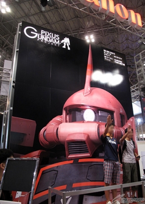 ▲先前發表了『PIXUS×GUNDAM PROJECT』的 CANON 攤位,首先由 PIXUS 製作的1/1比例實物大小「馬沙專用渣古(上半身)」圖像迎接大家!
