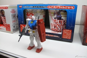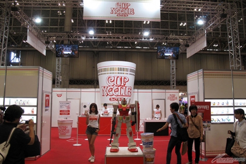 ▲日清食品攤位上,展示了杯麵配色的等身大高達!