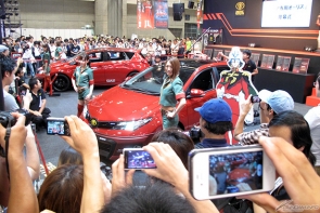 ▲首日上午舉辦的揭幕式擠滿了許多來場者,終於現出真面目的「馬沙專用 AURIS」市售款,讓現場閃光燈閃個不停!