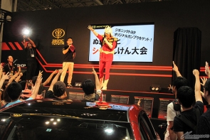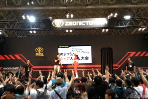 ▲以模仿馬沙而為大家熟知的搞笑藝人・ぬまっち在攤位内設置的舞台登場!獎品是「HGUC 馬沙專用渣古 Ver.ZEONICTOYOTA」的「馬沙猜拳大賽」,由ぬまっち和來場者展開白熱化的勝負!