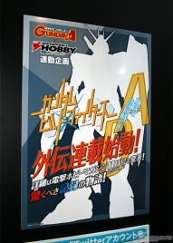 ▲前日發售的「GUNDAM HOBBY LIFE 001」示範作品也在此集合!接著還公開了「GUNDAM BUILD FIGHTERS」的外傳連載資訊!詳情請參閱9/25發售的11月號!