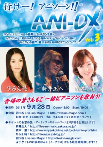 以高達歌曲為中心的動畫歌曲演唱會「去吧!動漫領域 ANI-DX Vol.3」,9月28日(六)在東京・四谷 Live inn Magic 舉行。