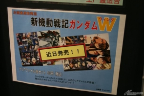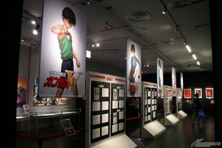 ▲『高達W』專區內,除了有每一位角色的巨大垂幕外,還有展出設定線稿和封面插圖等大量資料。