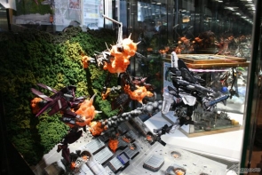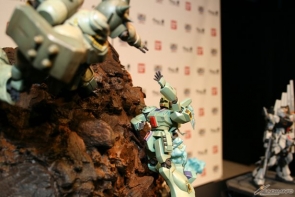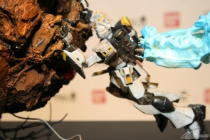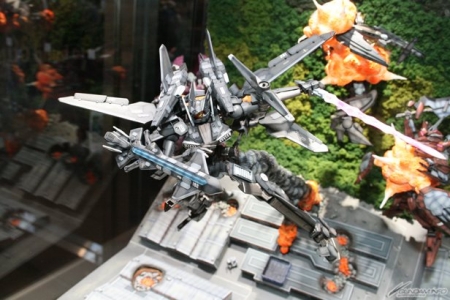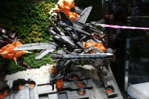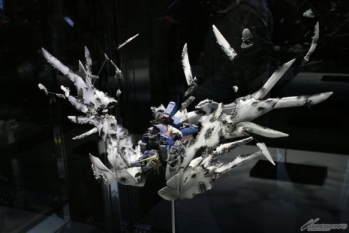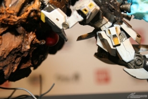 「這作品是捕捉一切都結束、機體墜往地面的那個瞬間。翅膀和眼睛等等的碎片用鐵絲配置在空中,來挑戰新的模型表現方式。我覺得透過配置碎片的方式,表現出了和場景模型不同的真實感。這個作品最大的特色就是零件看起來好像浮在空中的感覺。」(三輪一樹)
