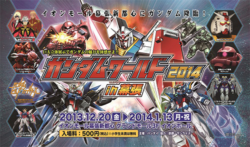 以高達系列為主題的活動「高達世界2013 in 幕張」,將在12月20日(五)大型購物中心「AEON MALL幕張新都心」的開幕當天起開始舉辦。入場費為500日圓(含稅),小學以下孩童免費。