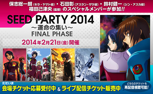 2月21日(五)在東京台場「高達東京最前線」舉行的「SEED PARTY 2014 ~命運聚會~ FINAL PHASE」會場參加票的第2波申購,自本日1月20日(一)起開始。