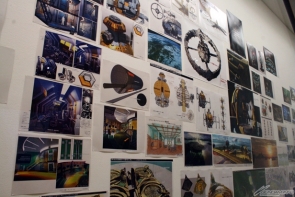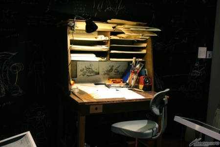 ▲展示中重現了富野監督當時工作桌,牆上貼了俗稱“富野筆記”、由富野監督親自描繪的MS和角色。