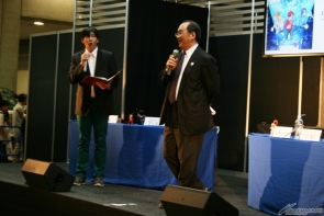 等待許久的舞台活動終於開始,首先登場的是川口名人,並且發表他個人最喜歡的三段『高達創戰者』劇情。