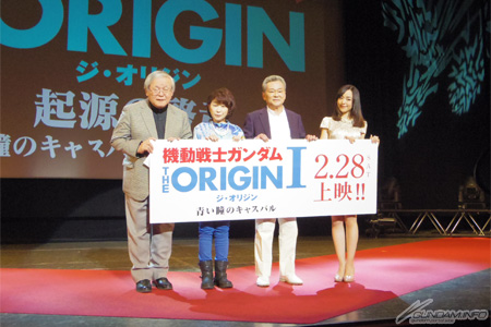 配合著『THE ORIGIN』的音樂,從『機動戰士高達』到『逆襲的馬沙』、接著是『THE ORIGIN』,活動首先在以馬沙為主角的影片下揭開序幕,緊接著這天的來賓,飾演馬沙・亞斯洛布的池田秀一、飾演卡斯巴爾.雷姆.戴昆的田中真弓、以及飾演飾演阿爾黛西亞.索姆.戴昆的潘惠美陸續登場。
