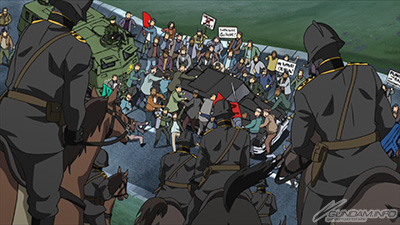 接著是安彥總監督也讚不絕口,卡斯巴爾和阿爾黛西亞乘坐太空坦克離去的鏡頭。描繪出這裡親子離別情緒的是在『機動戰士高達UC』也相當活躍的茂木信二郎。