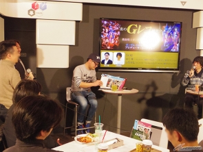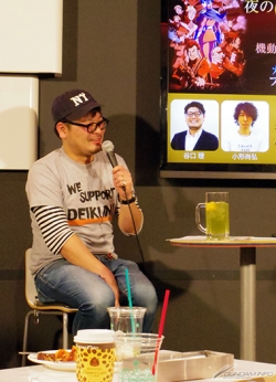 兩位製作人首先打過招呼後,因為正逢「馬沙・亞斯洛布祭典」期間中,所以谷口點了「德茲爾・薩比~抹茶&綠茶碳酸酒精飲料~」、小形點了「克勞蕾.哈蒙~琴酒&紫羅蘭香甜酒基酒~」。和觀眾一起乾杯揭開座談會的序幕。