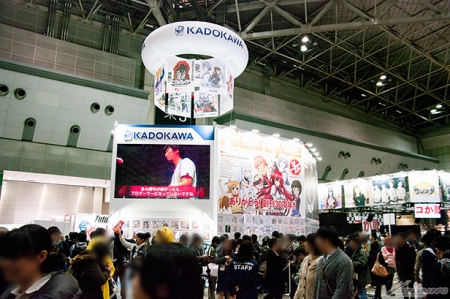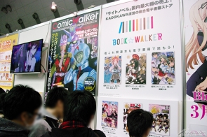 ▲「KADOKAWA」攤位中,除了有迎接創刊30周年的「月刊NEW TYPE」的回顧企劃之外,還有可以免費閱讀的網路漫畫雜誌「ComicWalker」和綜合電子書商店「BOOK☆WALKER」的展示!