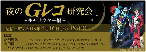 「夜晚的G-RECO研究會」是有『高達RECONGUISTA IN G』小形尚弘製作人作為來賓參加的談話活動,第2彈的「角色人物篇」預定展開以「G-RECO」角色人物為中心的談話內容。