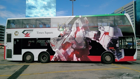 到8月31日(五)為止的活動期間中,「獨角獸高達」和「馬沙專用渣古II」等等塗裝的公車,會在連結香港島與九龍半島之間的路線運行。公車的路線號碼是101、112、116、118、290,共計5系統,運行時間不定。