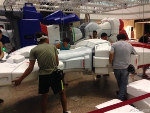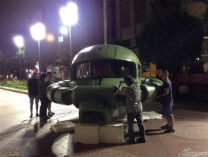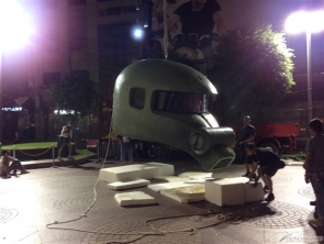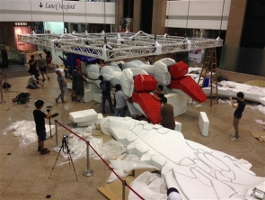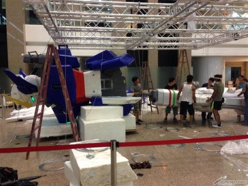 將抵達現場的巨大渣古頭像完成最後組裝。全高約有3m!