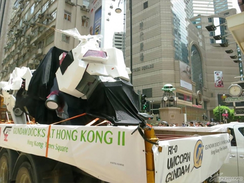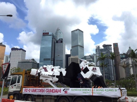 和前幾天的消息一樣現場的準備工作正在順利進行,這次亮點之一的獨角獸高達立像搬運照片也來了,馬上來看看吧。