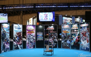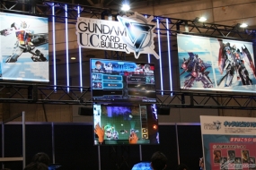 攤位上介紹了最新的高達遊戲!還有設置「機動戰士高達 U.C. 卡片編組」的試玩機台!