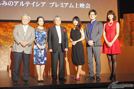 ▲(左起)安彦良和總監督、潘めぐみ、池田秀一、澤城みゆきさん、喜山茂雄、澤田かおり。