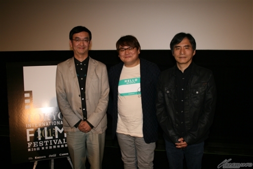 ▲左起是冰川竜介、水島精二監督、中島かずき。