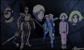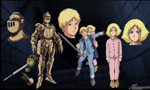 關於甲冑,雖然谷口製作人說「我想應該是銀色的吧」,安部則說「一開始我和監督討論的時候也使用了銀色,但是安彥說『不是再多像一點銅的材質嗎?』就改成這個顏色了」。然後還接到「想要營造出生鏽的感覺」這項指示。
