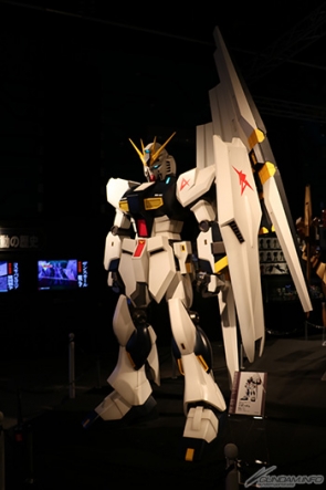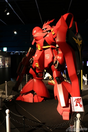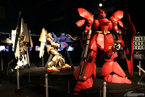 ▲進入會場1/10比例尺的「ν高達」、「沙煞比」、「百式+MEGA火箭 巨砲