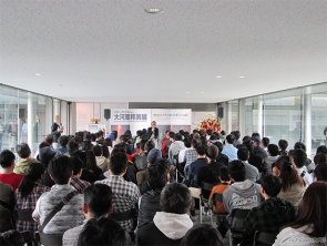 會場位於可欣賞琵琶湖明媚風光的佐川美術館。展覽首日還舉辦了大河原老師