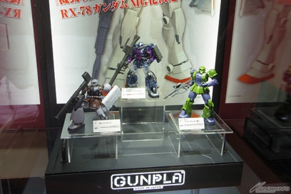 ▲舞台上也有的旗幟和「HG 高機動型渣古II 劇場限定透明Ver.」等高達模型!