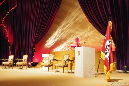 中央的豪華椅子上登場,表示「請稱呼我為“公王”」,展現出引會場陷入爆