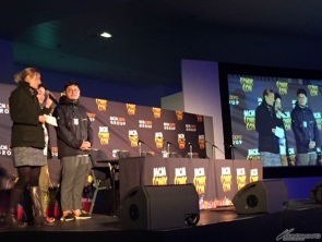 上映後的會場實施演講!透過翻譯解說作品和機械設計。
