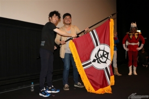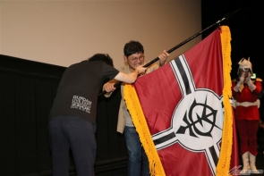 最後,舉行了『THE ORIGIN』的谷口製作人授予『雷霆宙域戰線』的小形製作人「自護旗幟」的授旗儀式,在4位登台者的感想下便圓滿結束。
