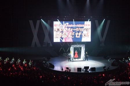 開場由BANDAI NAMCO Entertainment CEO大下 聰先生進行問候,並在神谷 明先生表達了25周年的感謝之後,由水木一郎先生在幻術中登場&演唱「グレートマジンガー」華麗地揭開序幕。水木先生也在20周年打頭陣,可以說是活動不可或缺的一部份。