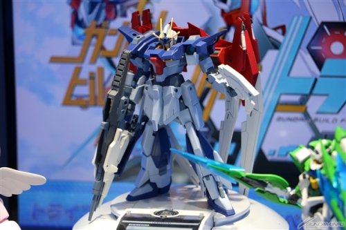 ▲「HGBF 電光高達」和預定9月發售的「HGBC 電光後背包武器系統Mk-III」(含稅864日圓)的組合展示。