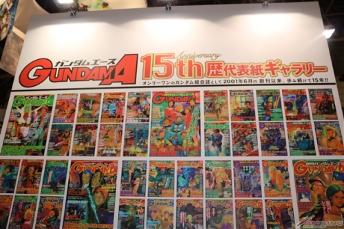 ▲創刊15周年的「GUNDAM ACE」,特別展示歷代封面和親筆簽名板!