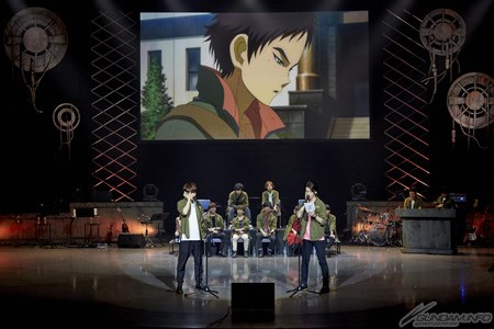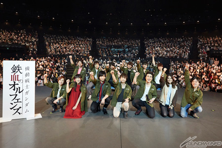 開場即開始第1季主題曲「Mobile Suit Gundam:Iron-Blooded Orphans」的現場演奏,螢幕上則是片中名場面。然後,卡司們也配合影片表現現場配音,在具有魄力的音樂和充滿臨場感的演技之下,整個會場都被拉入其中。