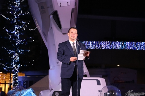 紀念會一開始,先在牆面的螢幕映照出實體大高達立像的回顧影片,接著由各相關團體的代表者向大家問候。