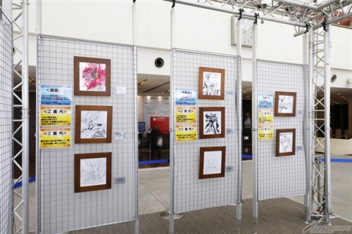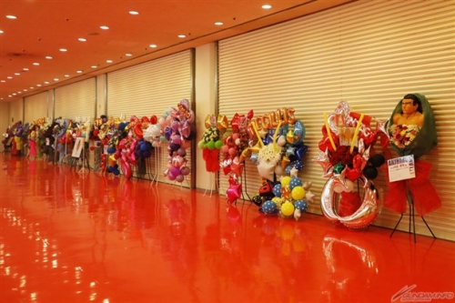 會場中,有著展示『鐵血孤兒』商品的區域,以及整排由粉絲獻給卡斯和角色的高架花籃。