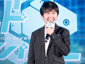 左起為創通的出原隆史總經理、BANDAI的垰 義孝常務董事、鈴木 福、SUNRISE的佐々木 新董事、SUNRISE的小川正和製作人