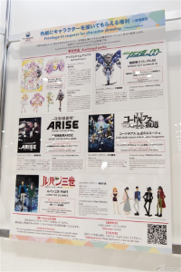 東京電視台的攤位上,則是介紹了『高達創戰潛行者』的開播資訊。而BS11頻道的攤位也有介紹『機動戰士高達00』和『高達創戰潛行者』開播資訊。還有,動漫旅遊協會攤位上,則是針對適合春天郊遊季節的動漫聖地指南做了介紹。