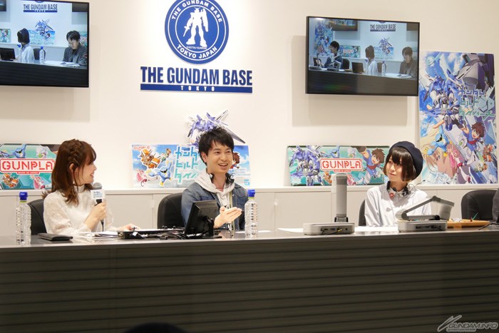 首先,關於當時決定各自角色後的心境,來賓們表示「本來是單純覺得高興,但後來逐漸感受到了壓力。錄第1話時是最緊張的時候。」(小林)。「很高興,但感受到了自己跟『高達』系列的關連後,既緊張又有壓力,意識到這點後我開始抱持著積極的心態,打算透過這部作品來讓自己來更加了解『高達』」(藤原)。