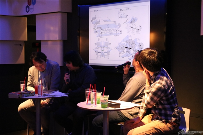 『Twilight AXIS』部分,針對雅萊特及丹頓、費爾莫兄弟的設計,Ark看著利用投影片投射出的設定圖,一邊為大家進行解說。他表示「對於設計方面有特別意識到動畫,即使透過護目鏡也能清楚辨識出輪廓。此外也很重視“歷史觀”,如果能用衣服和MS,展現出十字先鋒軍的特色就更好了」。