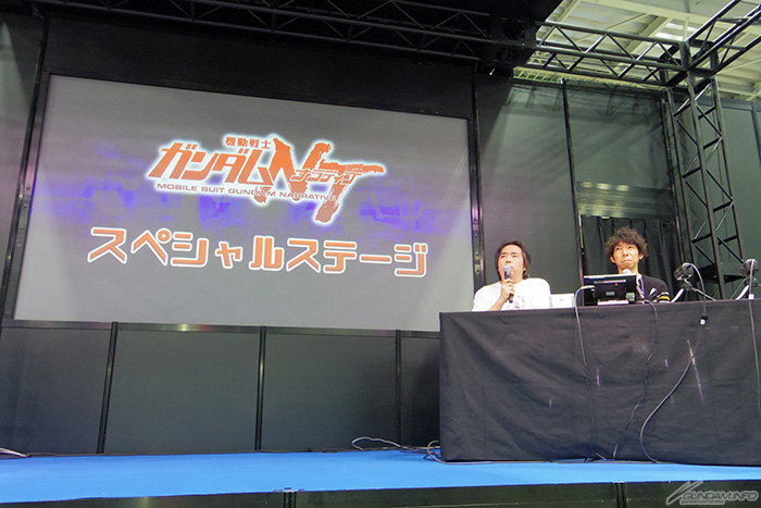 當談到機體時,BANDAI SPIRITS HOBBY事業部的福田也一起登場。一邊講述關於高達模型的話題,一邊介紹登場MS。