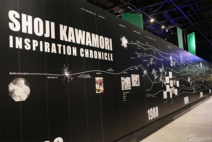 靈感展示場一口氣展出了河森老師的個人經歷和作品歷史。包括還是小學生時,在造訪的萬博(EXPO'70)會場並接觸各國文化後,成為了自己難得的體驗。還有重現學生時代做實驗的火箭煙火,以及為了找尋靈感,造訪中國等等國家的取材照片也一一展示。