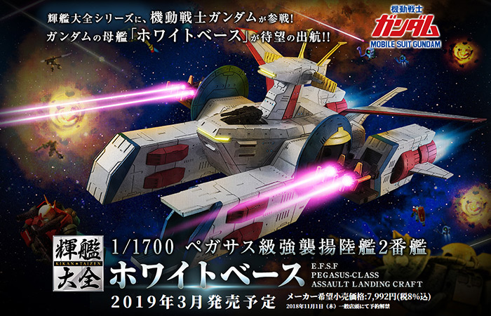 「輝艦大全(KIKAN*TAIZEN)」是以“大人的艦隊收藏”為題材,以精密的造型、充滿厚重感的塗裝,以及光澤表現為製作概念立體化的已塗裝完成品系列。藉由本次推出的「白色基地」,實現高達作品眾盼已久的首次參戰。