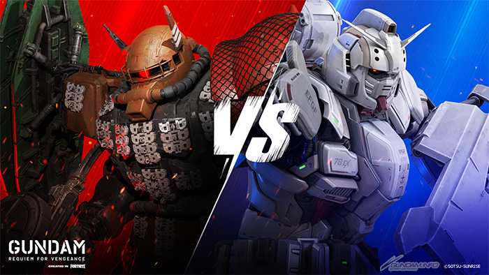 玩家將在FORTNITE的世界體驗以『復仇的安魂曲』為主題的團隊死鬥遊戲。玩家將分為自護軍和連邦軍的士兵,在競爭擊殺數的同時收集分數啟動MS。「無識別型渣古II(蘇拿利機)」和「高達EX」也將登場,發揮他們的力量以各自隊伍的勝利為目標,享受『復仇的安魂曲』的世界觀。