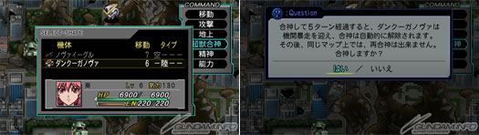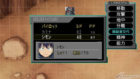紅蓮螺巖處於合體狀態時、使用個別指令「操縱者交換」的話,主駕駛和副駕駛會互相交換。例如卡米那一開始就擁有特殊技能「戰意高昂」,較容易提高氣力,比西蒙能快點使用強力武器。